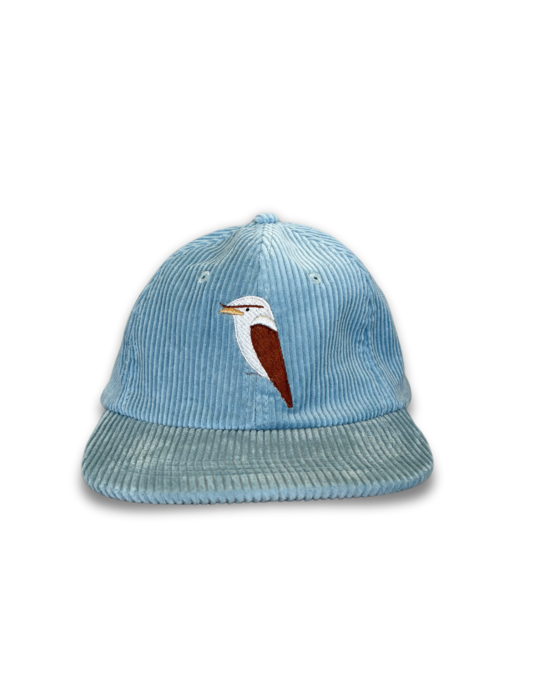 The Tawny Frogmouth (Podargus strigoides): master of disguise and king of chill, this nocturnal Aussie icon is as mysterious as it is endearing. With mottled grey feathers that blend seamlessly into tree bark, the tawny’s camouflage game is unmatched — but its wide, wise eyes give away its curious nature. Calm, watchful, and a little quirky, the Tawny Frogmouth is the spirit of slow mornings and moonlit nights. Wearing one on your lid brings a touch of quiet magic to your everyday wanderings. This soft corduroy hat feels as relaxed and timeless as the bird itself — perfectly at home from the bush to the backyard.